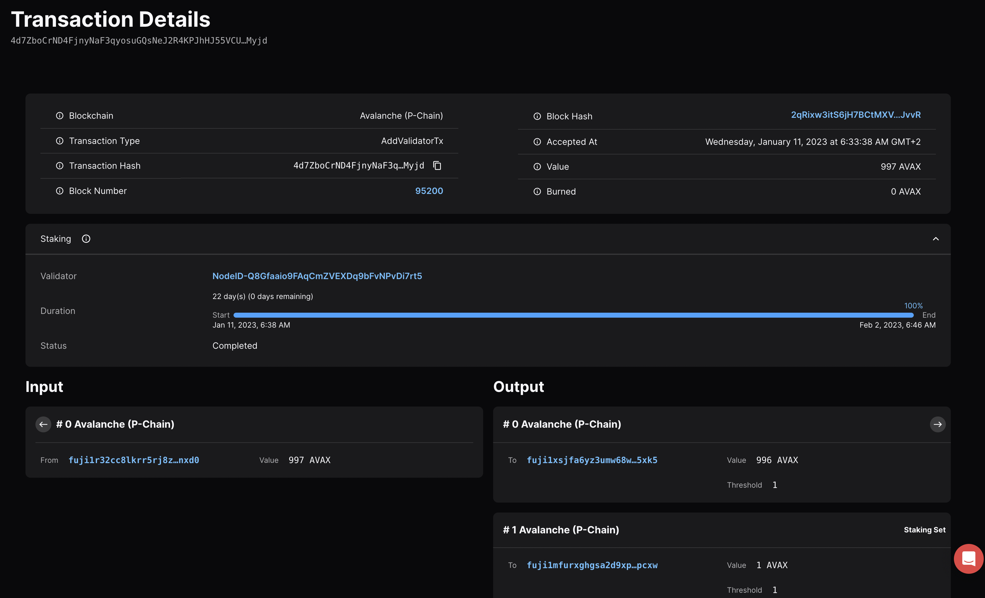 - **`Balance`** Additional AVAX amount to add to the validator's balance where `Balance <= sum($AVAX inputs) - sum($AVAX outputs) - TxFee`.